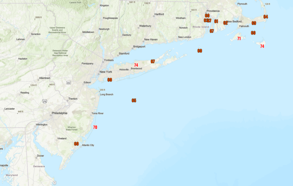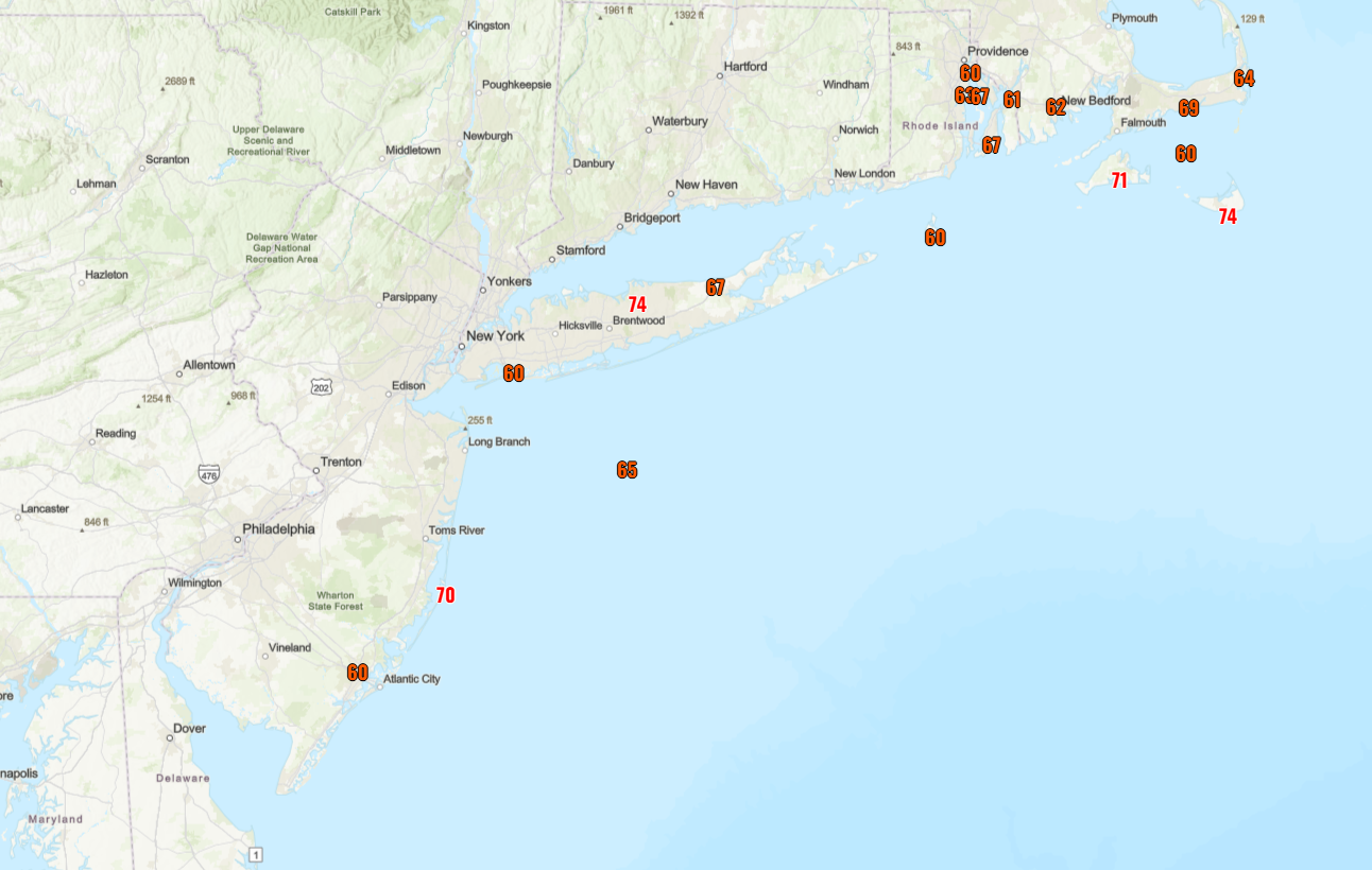 More to come on the snow, but what about the wind? We have seen several gusts up over 65 mph. Atlantic City hit 60 mph, Barnegat Light 70 mph, and Stony Brook and Nantucket both hit basically hurricane equivalent at 74 mph. Marthas Vineyard hit 71 mph.