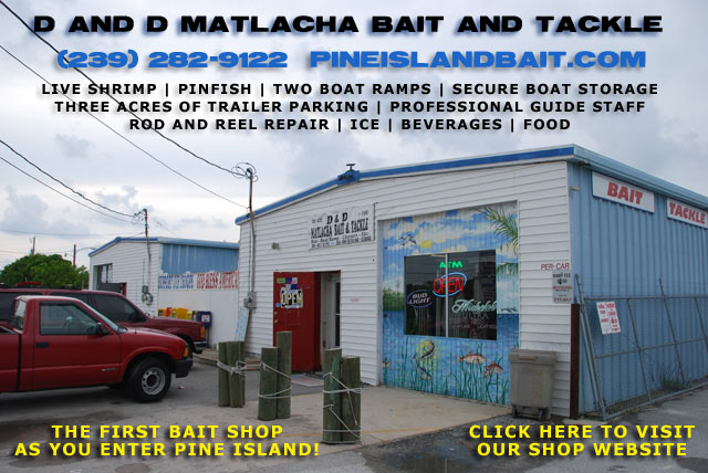 D & D Matlacha Bait and Tackle is a full-service tackle shop located in Matlacha and is the first bait shop on the right when traveling to Pine Island. Their services include: