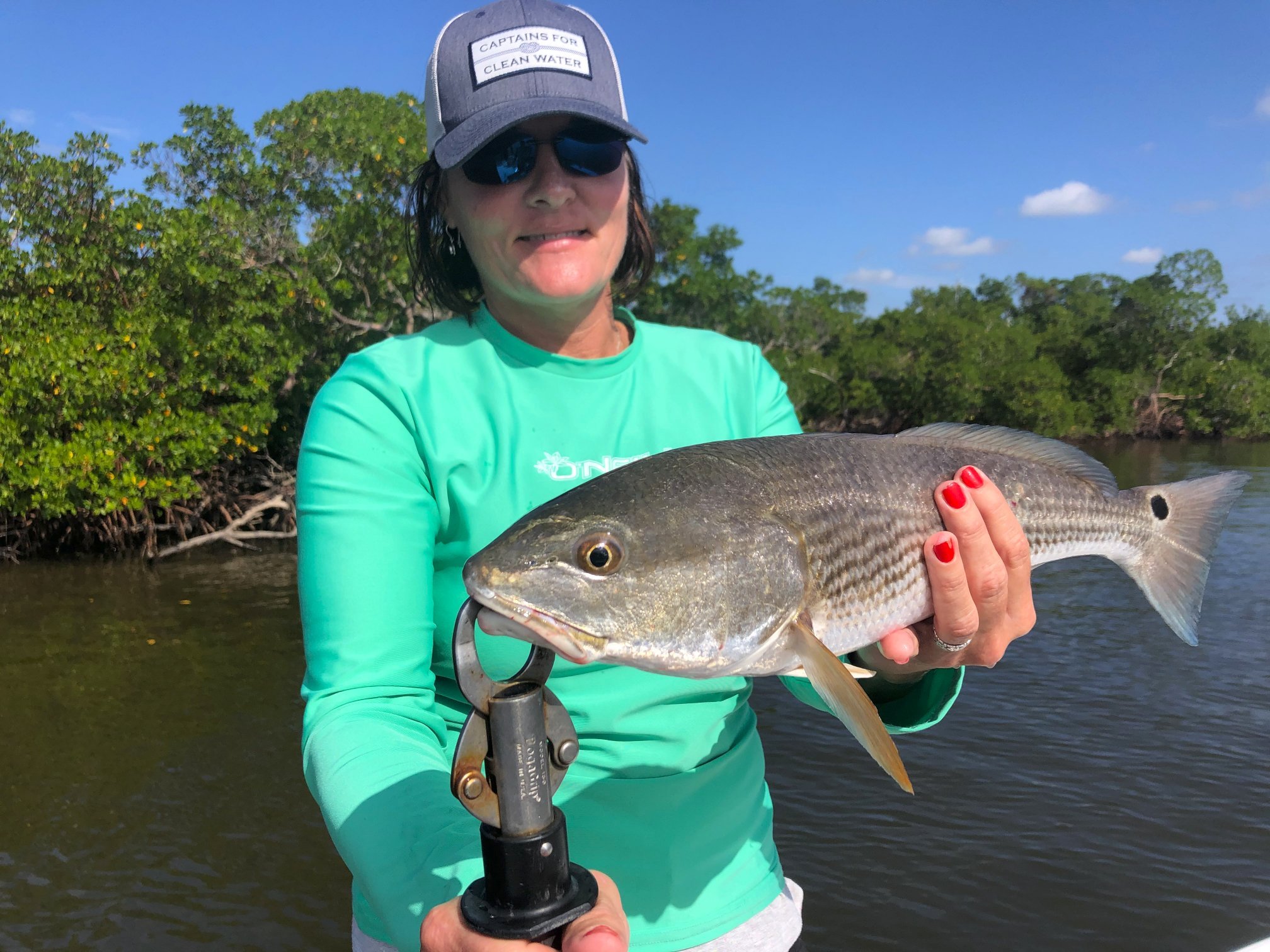 Summer redfish in our waters tend to school up more predictably than in other seasons. As water temperatures rise, redfish gather in larger groups around deeper mangrove shorelines and oyster bars, particularly on the lowest stages of the tide.