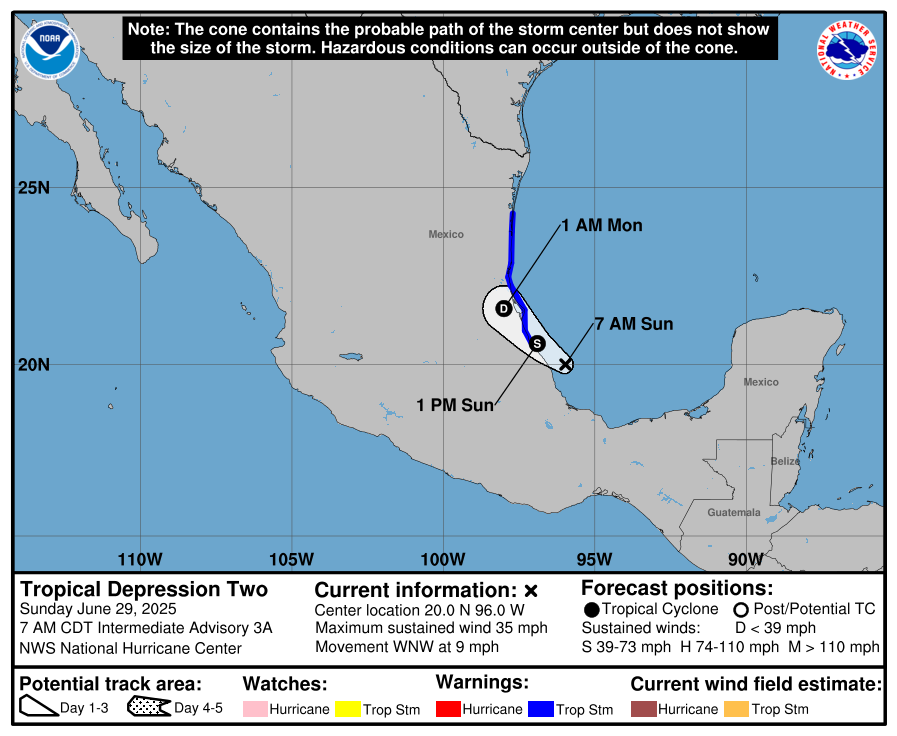 Coastal Watches/Warnings and Forecast Cone for Storm Center