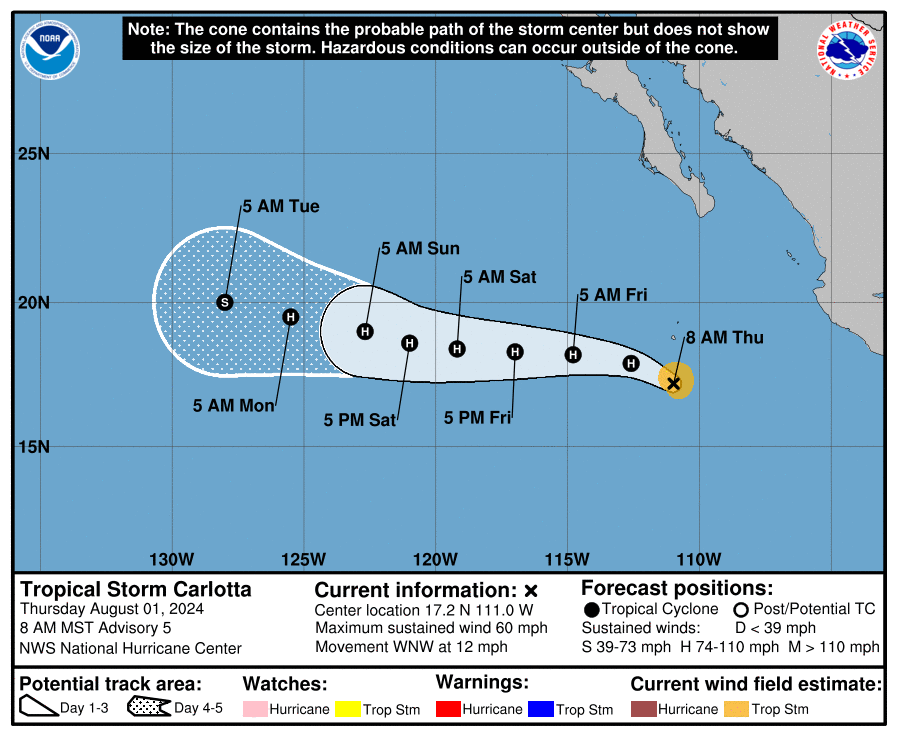 Coastal Watches/Warnings and Forecast Cone for Storm Center