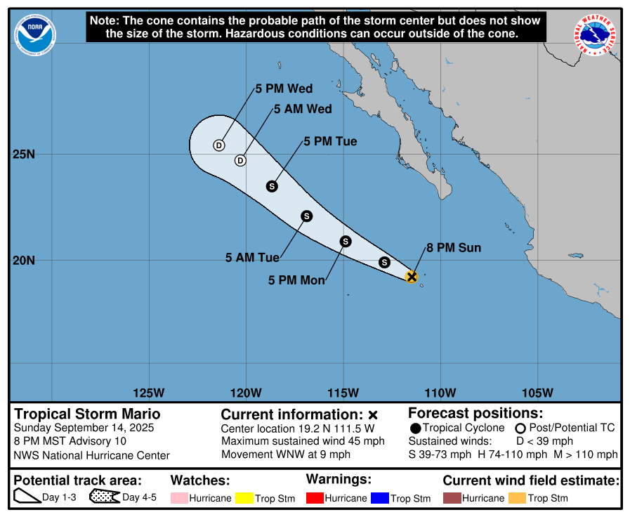 Coastal Watches/Warnings and Forecast Cone for Storm Center