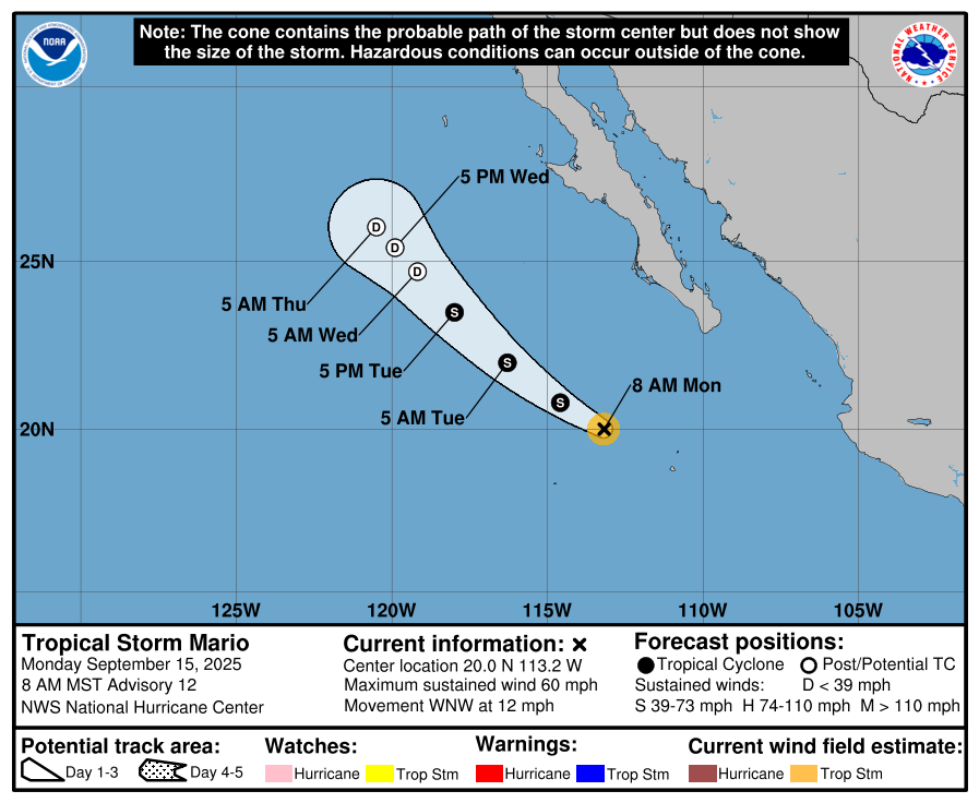 Coastal Watches/Warnings and Forecast Cone for Storm Center
