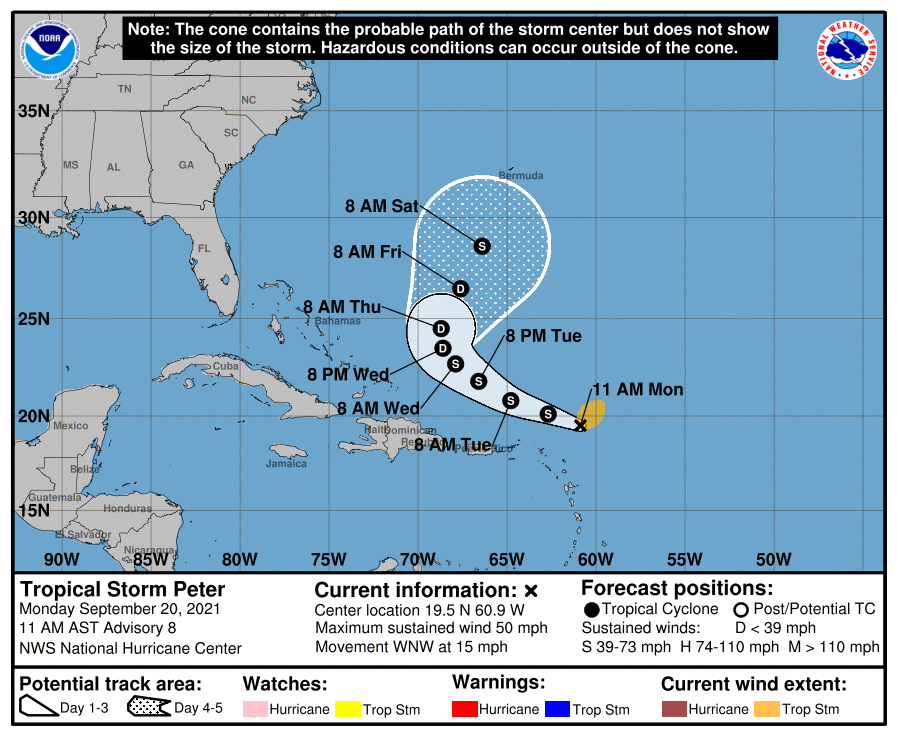Coastal Watches/Warnings and Forecast Cone for Storm Center